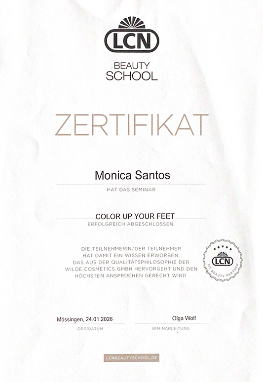 Ich bin Monica Santos und möchte, dass Ihre Füsse gesund, schön und gepflegt sind.